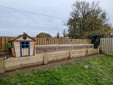 the Customer needed a retaining wall built to prevent the bank from eroding. It was then the perfect spot to build a chicken shack and run!